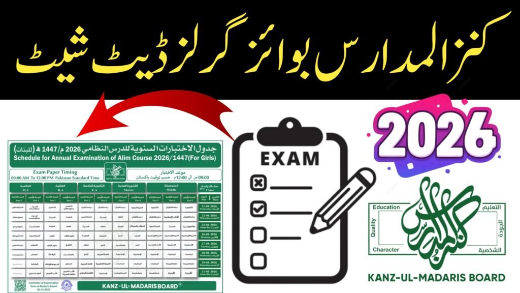 Kanzul Madaris Exam Date Sheet 2026 for Boys and Girls کنزالمدارس ڈیٹ شیٹ