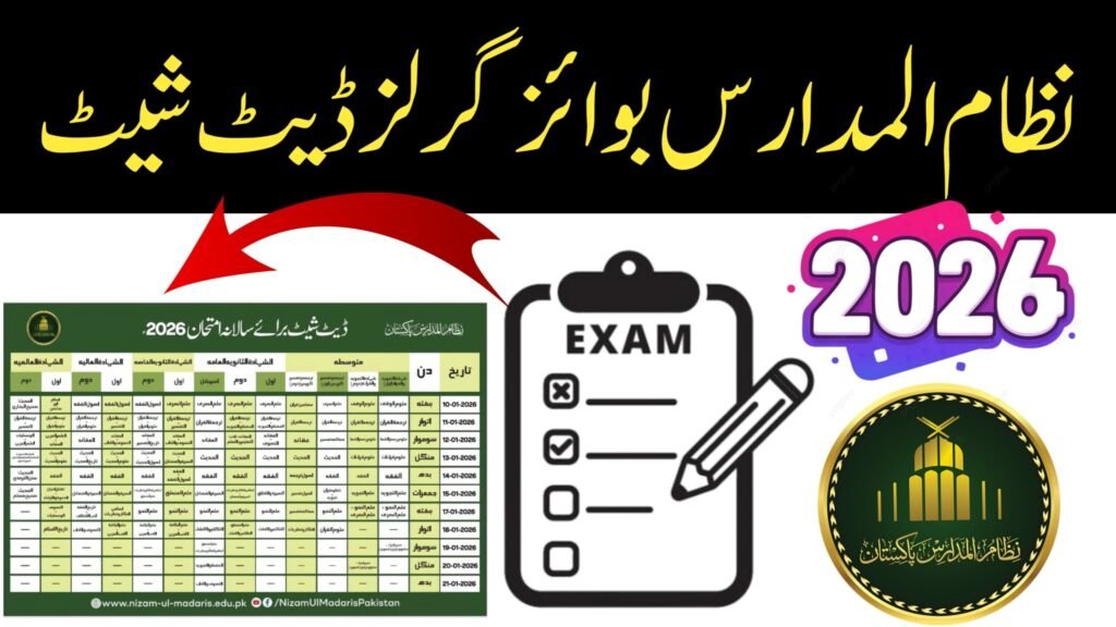 Nizam ul Madaris Exam Date Sheet 2026 for Boys and Girls نظام المدارس ڈیٹ شیٹ