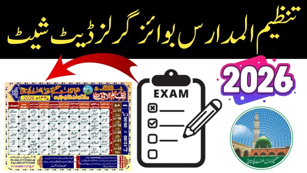 Nizam ul Madaris Exam Date Sheet 2026 | نظام المدارس پاکستان طلبہ و طالبات ڈیٹ شیٹ نظام المدارس پاکستان میں ایک ایسی تنظیم ہے جو مذہبی مدارس کی نگرانی اور تنظیم کرتی ہے۔ یہ اس بات کی ضمانت کے لیے قائم کیا گیا تھا کہ یہ مدارس یکساں اور معیاری نصاب کی پیروی کریں۔ مقصد […]