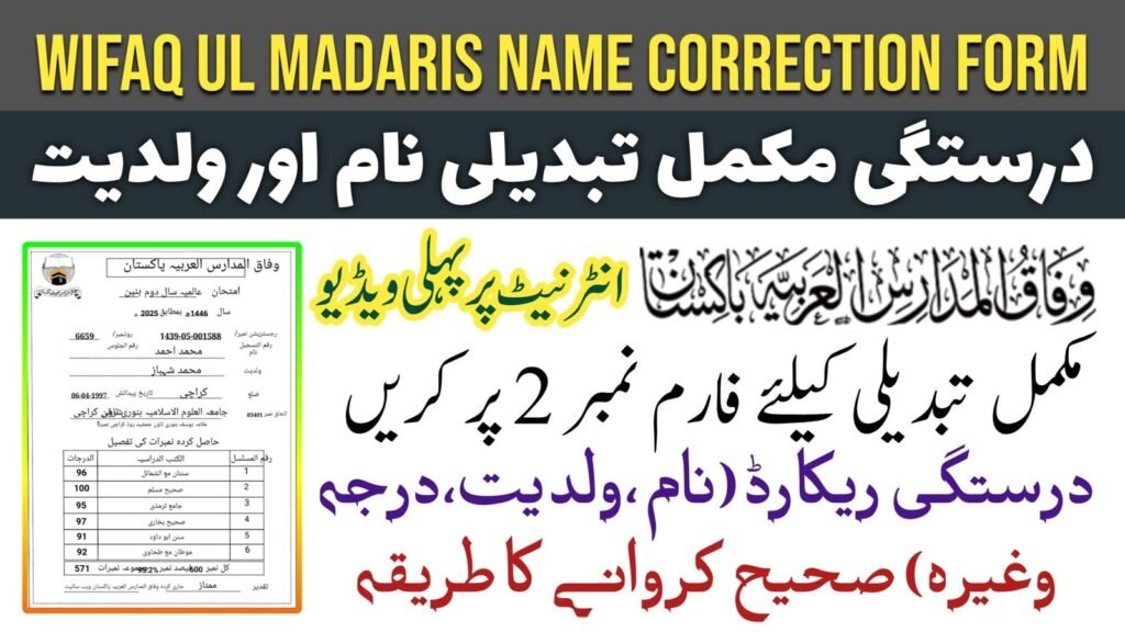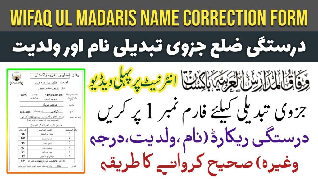 Wifaq ul Madaris Al Arabia Pakistan Name, Father Name correction form 1 | وفاق المدارس العربیہ پاکستان درخواست فارم براۓ درستگی ضلع ، جزوی تبدیلی نام اور ولدیت