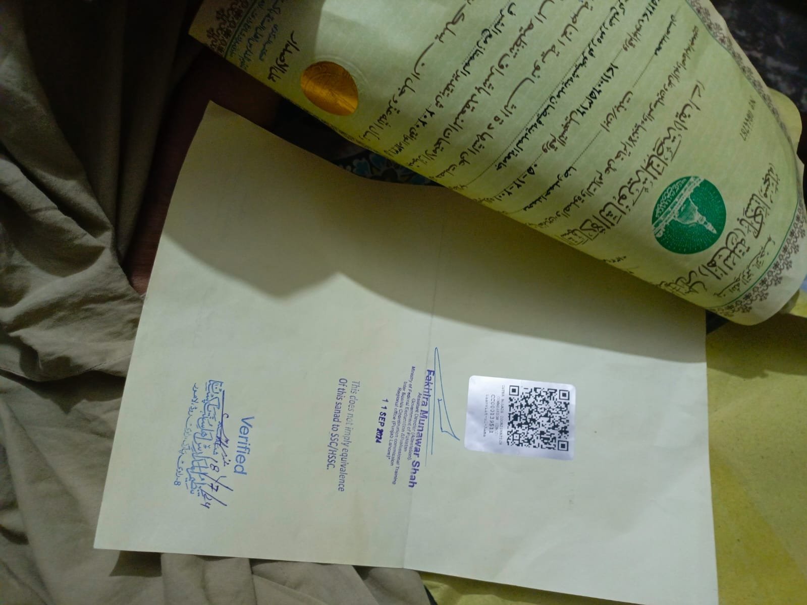 Tanzeem ul Madaris HEC Equivalence Certificate (MA Arabic, MA Islamiat)