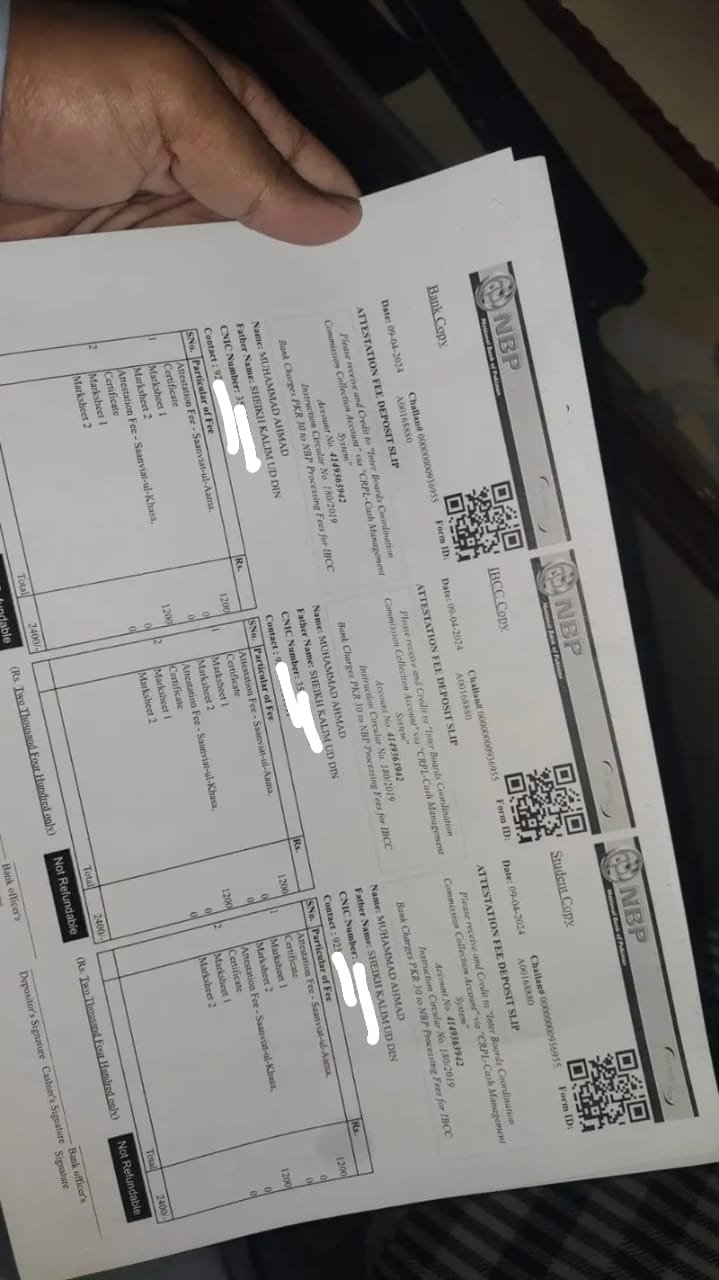 - Deposit prescribed attestation fee in National Bank of Pakistan.