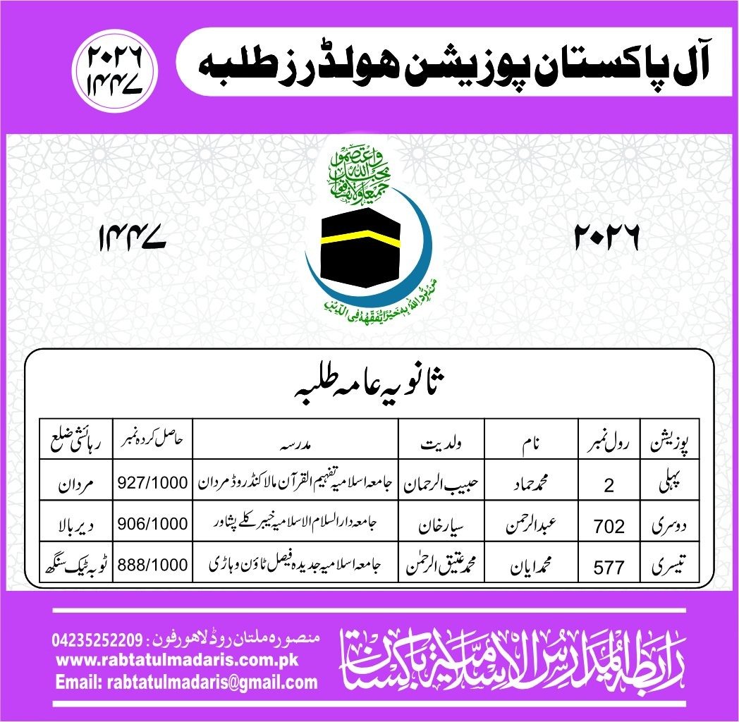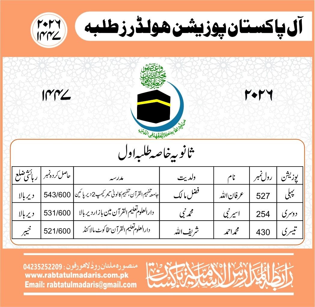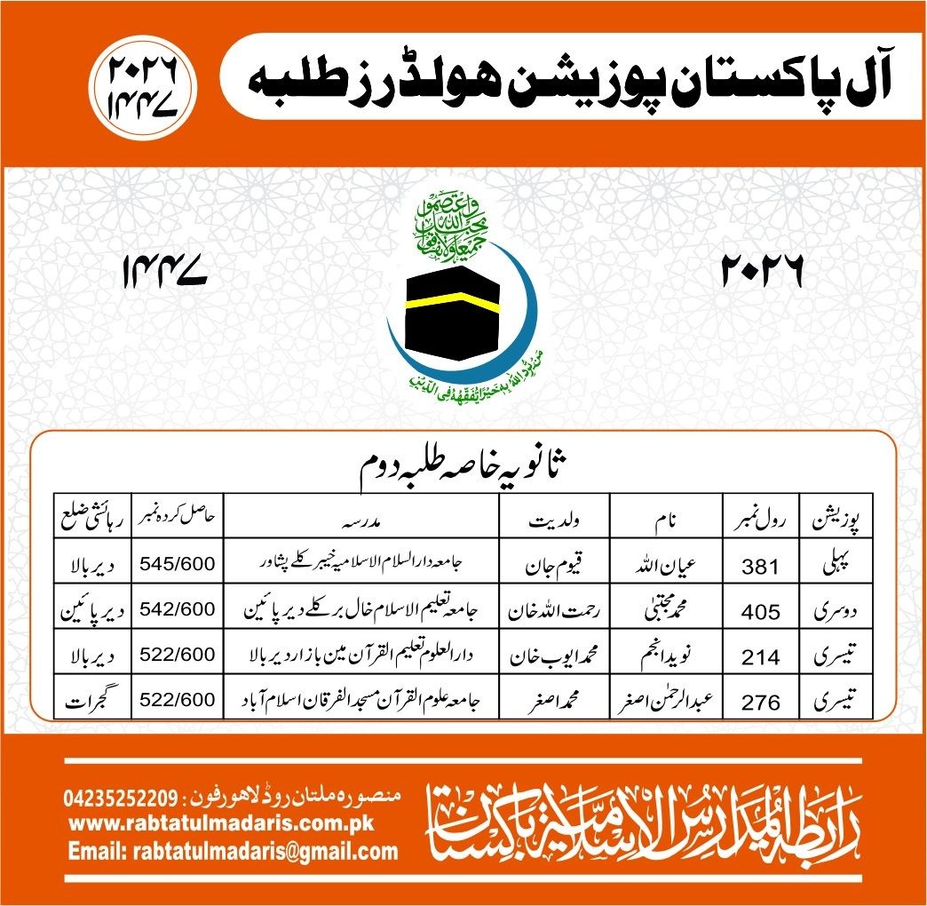 Wahdat Ul Madaris Al Islamia Pakistan Boys Position Holders 2026