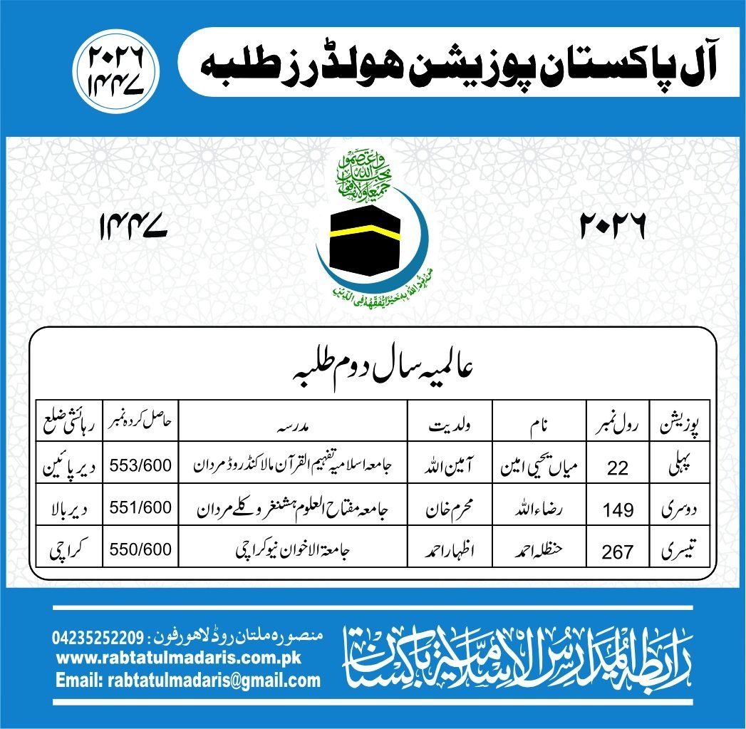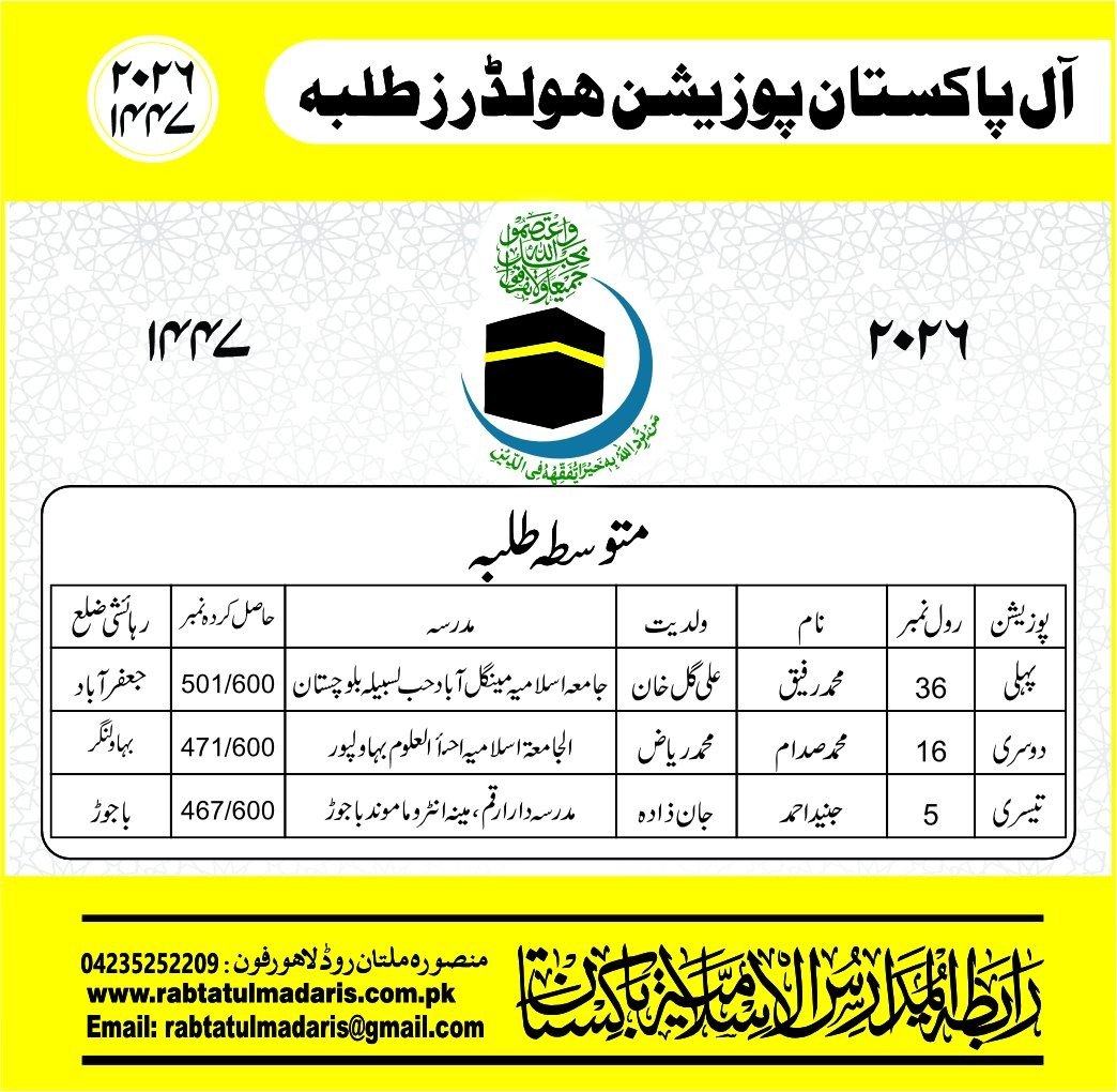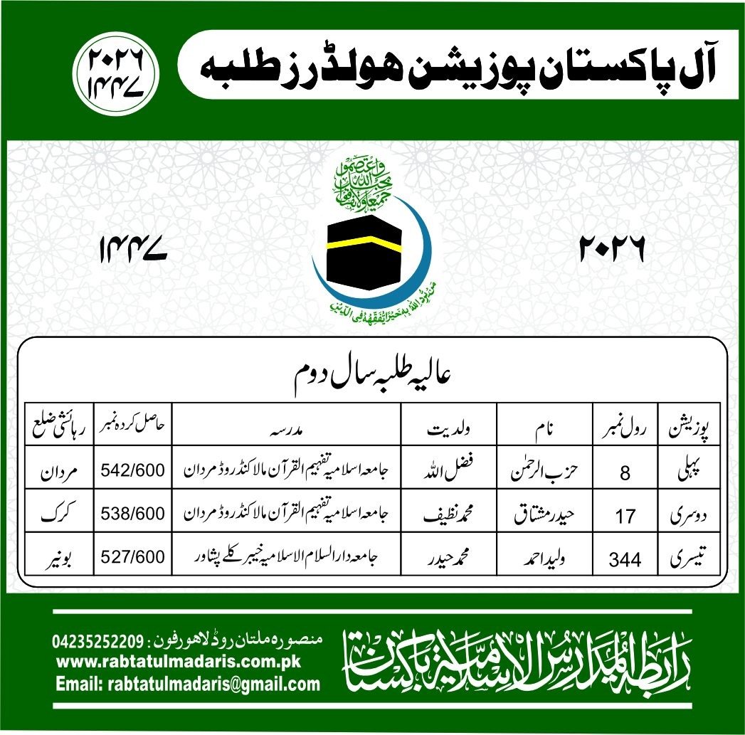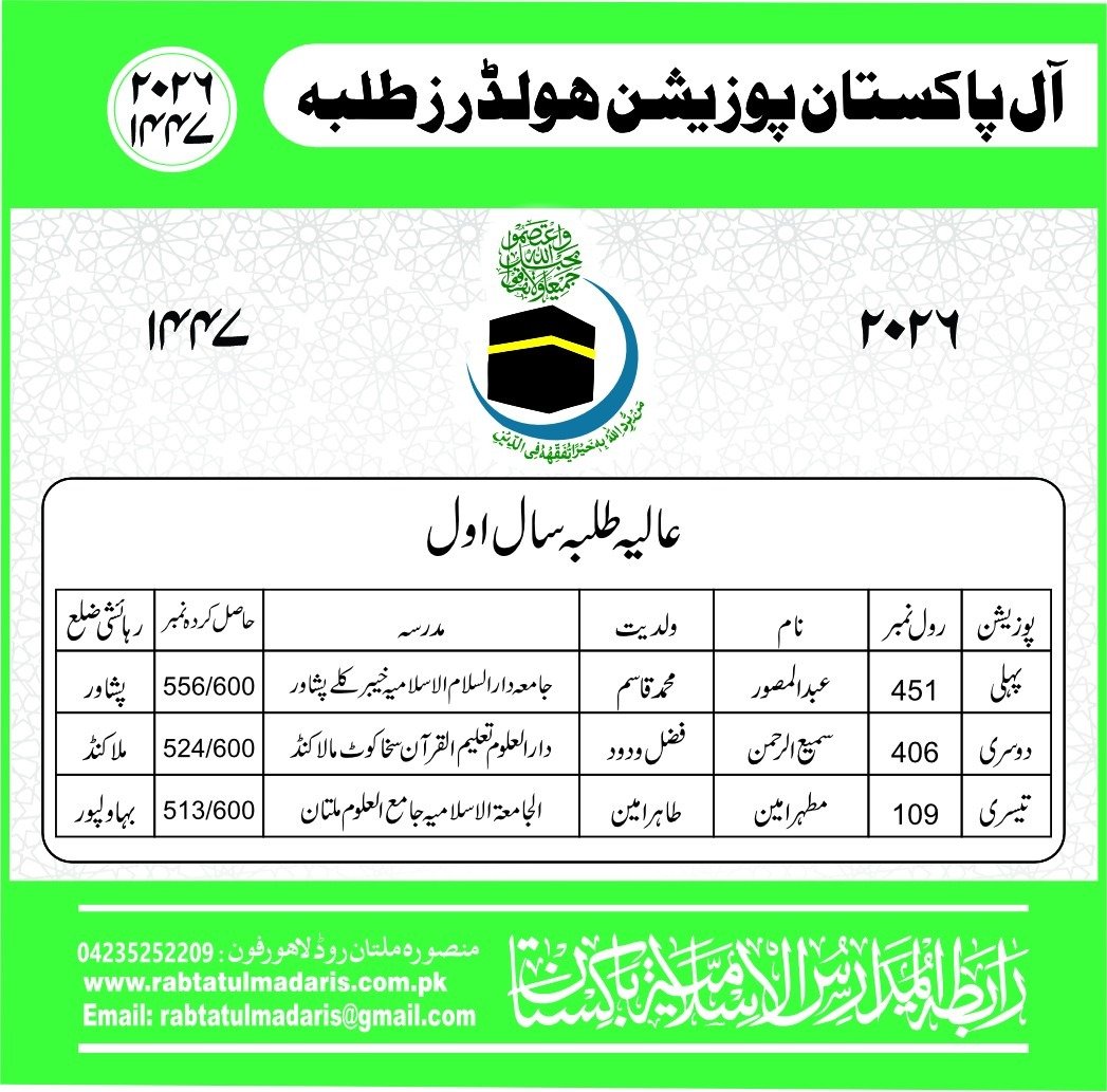Wahdat Ul Madaris Al Islamia Pakistan Boys Position Holders 2026