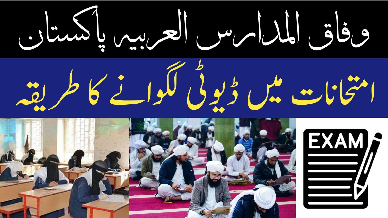 وفاق المدارس العربیہ ہر سال منظم انداز میں امتحانات کا انعقاد کرتا ہے۔ اس سلسلے میں مدارس سے درخواست کی جاتی ہے کہ وہ اپنے اساتذہ اور استانیوں کے نام تجویز کریں جو امتحانی عمل کی نگرانی کے لیے موزوں ہوں۔ اساتذہ اور استانیوں کے لیے درج ذیل اوصاف ضروری ہیں۔